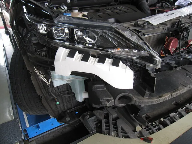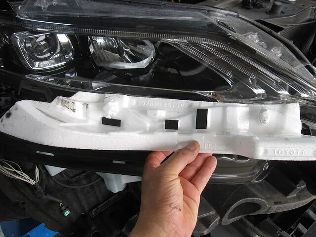 要は、フロントバンパー下のエネルギーアブソーバ(発泡スチロール)の上下にゴムスペーサーを挟み込みかさ上げ、強引にフロントバンパー持ち上げるという