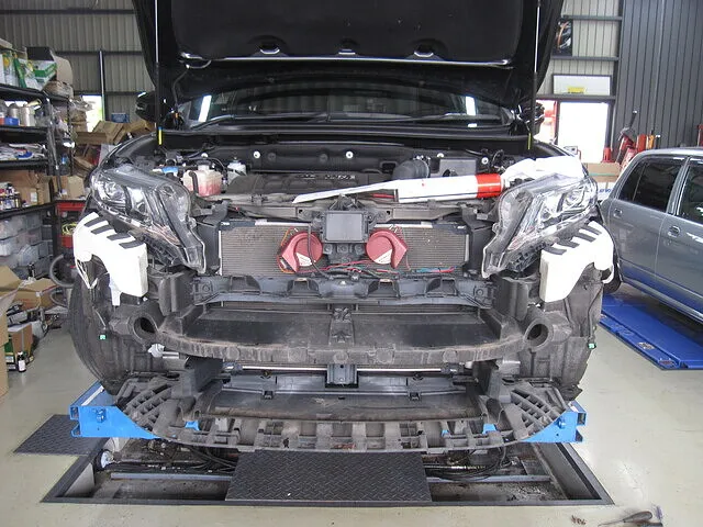 ハリアーにモデリスタ製のフロントスポイラーを装着するとその重みにフロントバンパーが耐え切れずにフロントバンパーが裂けてしまうんです。 。