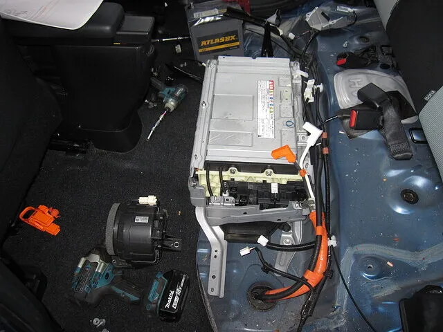 トヨタのハイブリッド車の中でもアクアのハイブリッドバッテリーは小型で軽く一人でも車両からおろせます。 。