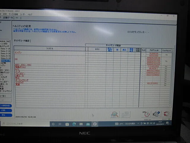 診断機にてハイブリッドバッテリーの現状をあれやこれやとチェック ・・・