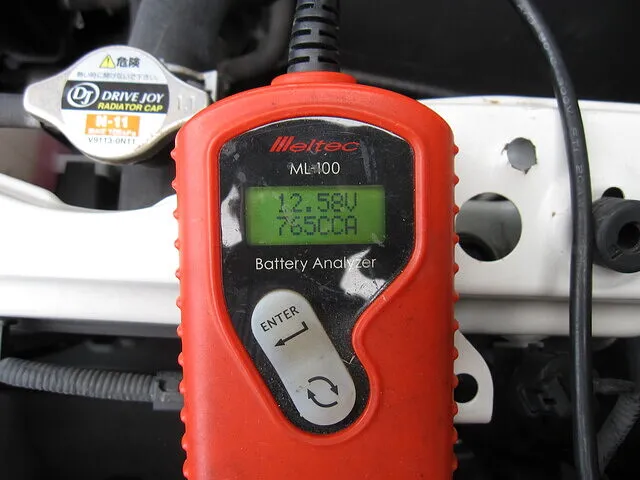 一応、充電機能の点検を済ませ、現在のバッテリー状況をテスターで診てみます