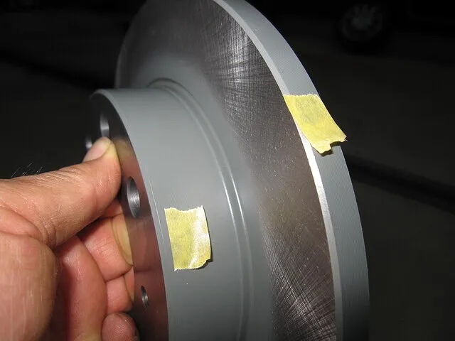 そう、ディクセル製ブレーキローターはマスキングテープを貼った部分が
