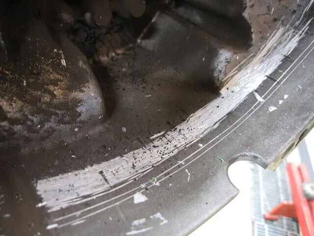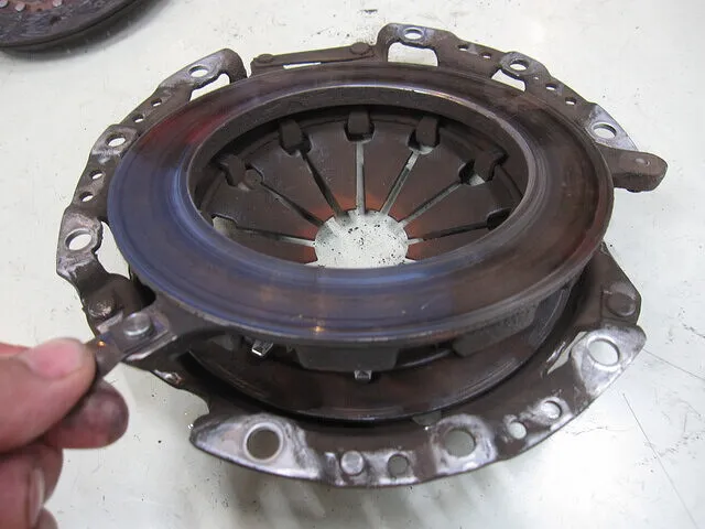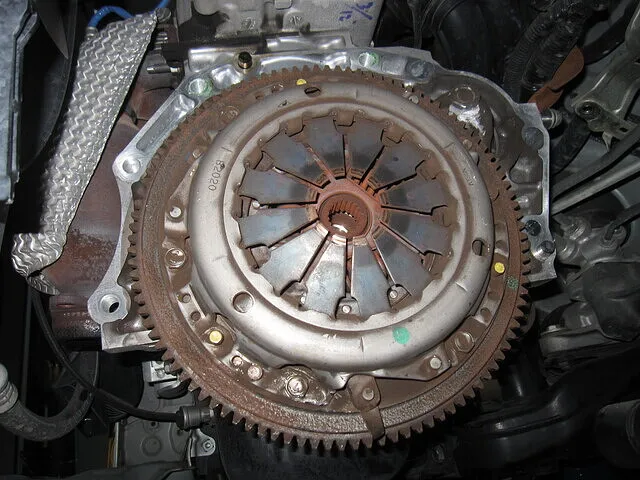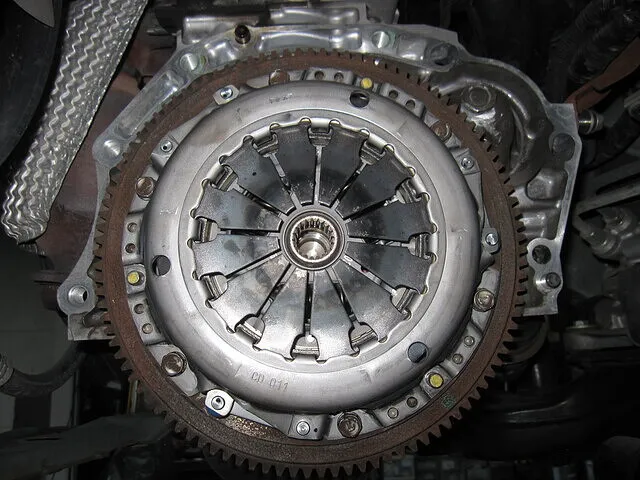 怖い壊れ方ですね だっていくら軽自動車だからと言ってもクラッチプレッシャープレートって鉄で出来た厚みのある円盤状で重さだって結構あるんだから・・ この重量物がエンジンの回転で毎分数千回転のスピードで回ってるものなんですが、もし高回転走行中に完全にクラッチカバーからプレッシャープレートが完全に外れたら・・