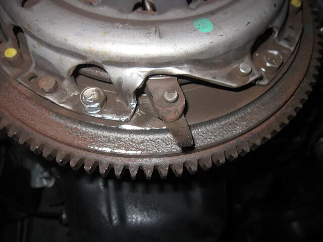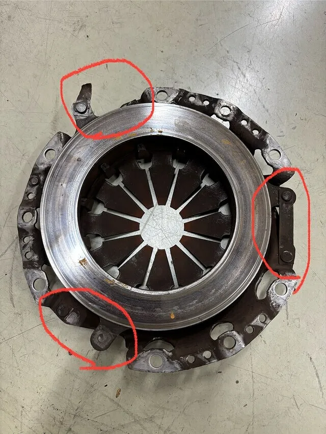赤丸の3時の位置 が正常 金属ステーで クラッチカバー と クラッチプレッシャープレート を固定