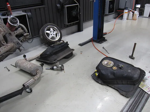 NAロードスター デフキャリア及びリヤメンバーを下ろさないとフューエルタンクにアクセス出来ません